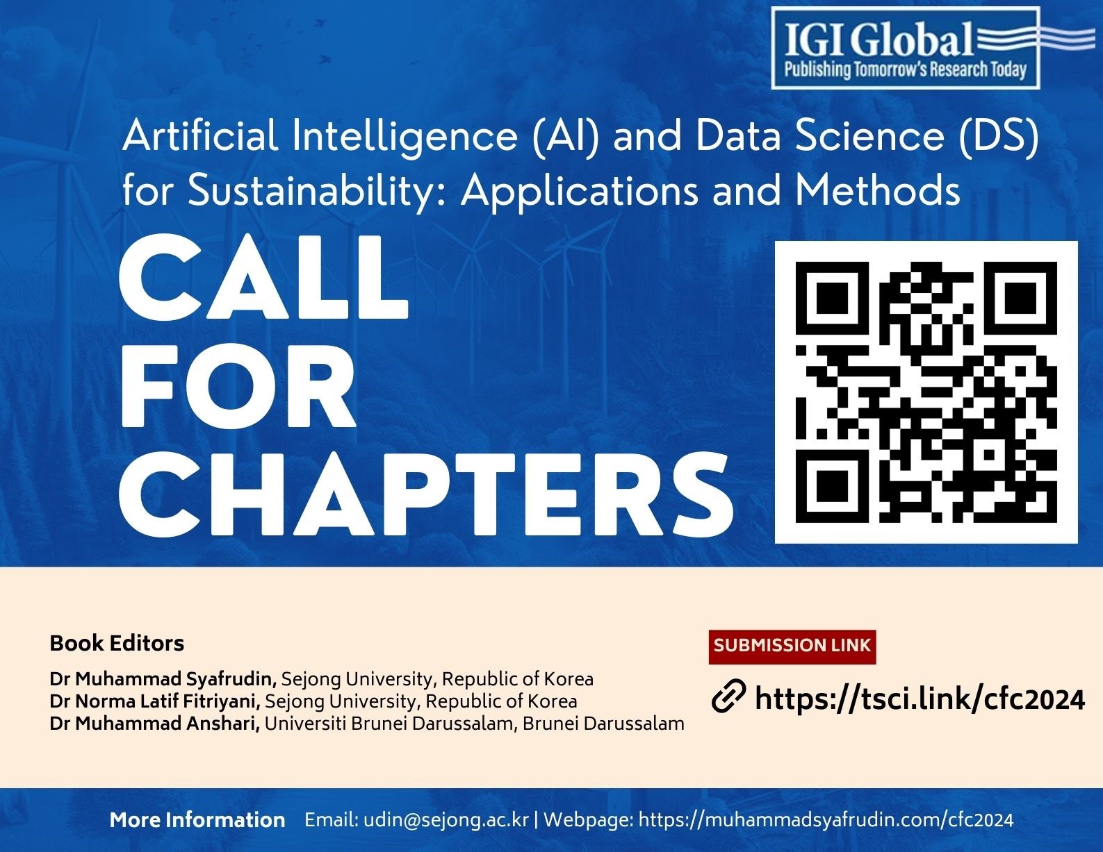 Currently, we are in the process of editing a forthcoming book entitled "Artificial Intelligence and Data Science for Sustainability: Applications and Methods", to be published by IGI Global, an international publisher of progressive academic research.