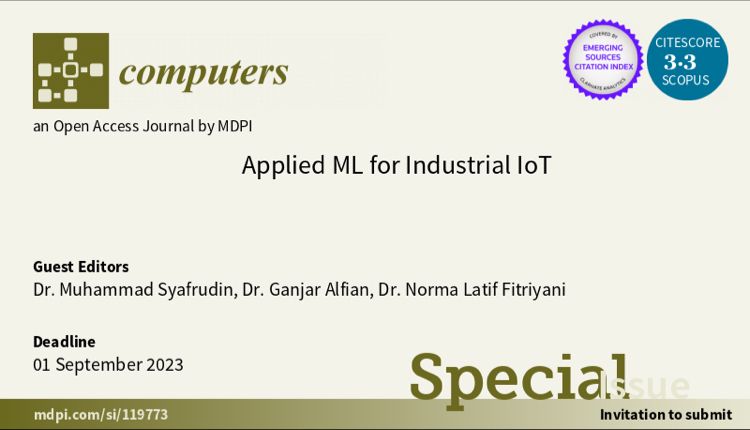 My colleagues and I are guest editing a special issue related to the application of #machinelearning and #IoT in industry, which will be published continuously by Computers (Scopus SJR Q2).