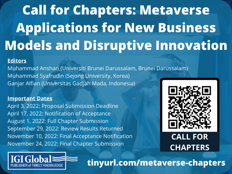 "Metaverse Applications for New Business Models and Disruptive Innovation", to be published by IGI Global, an international publisher of progressive academic research.